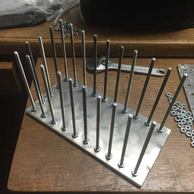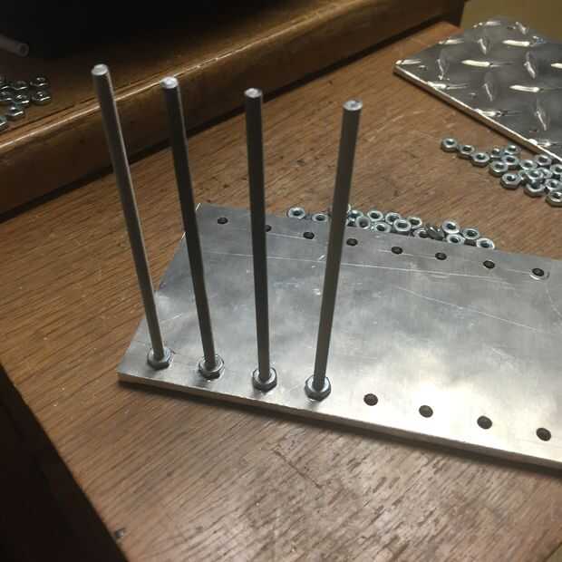 Una vez que ambas placas están perforadas, instalar las barras. En primer lugar, dejarlos en su lugar en el techo con una tuerca. A continuación corte la tubería plástica a una longitud apropiada y deslice las piezas sobre los tornillos. Esto protegerá los teléfonos celulares de las roscas de los tornillos. También podría utilizar aluminio o cobre tubería para un efecto de color agradable en su lugar y ahorra en las tuercas. Hacer lo que expresa tu estilo mejor.