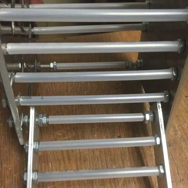 Yo pensé esto primero lejos a continuación, habría instalado este bar. Pero no lo hice, así que tuve que cuidadosamente las tuercas hasta el tornillo de la pulgada, añadir el tubo y moverlo todo otro ¼" en un momento hasta el perno a través del techo y el piso.