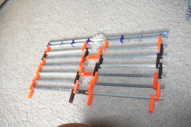 su un clásico del juego de gatos.Mejor más grande gira más rápido y construido a partir de K'nex!!Realidad giraPaso 1: partes Tiene una buena cantidad de piezas totales 586 conectores morados6 conectores azules3 conectores blanco8 conectores verdes8