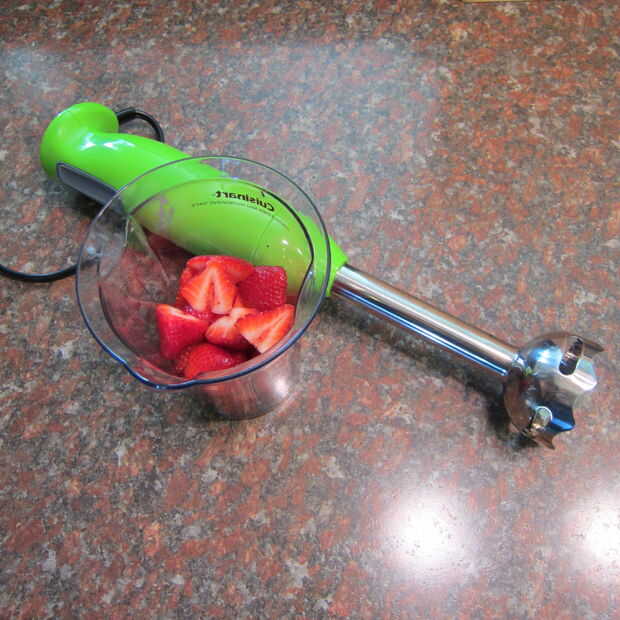 Puré con licuadora - añadir 2 libras de fruta fresca en una taza profunda y mezcla hasta que quede suave. Dejar reposar hasta que se necesite. Eso es todo!