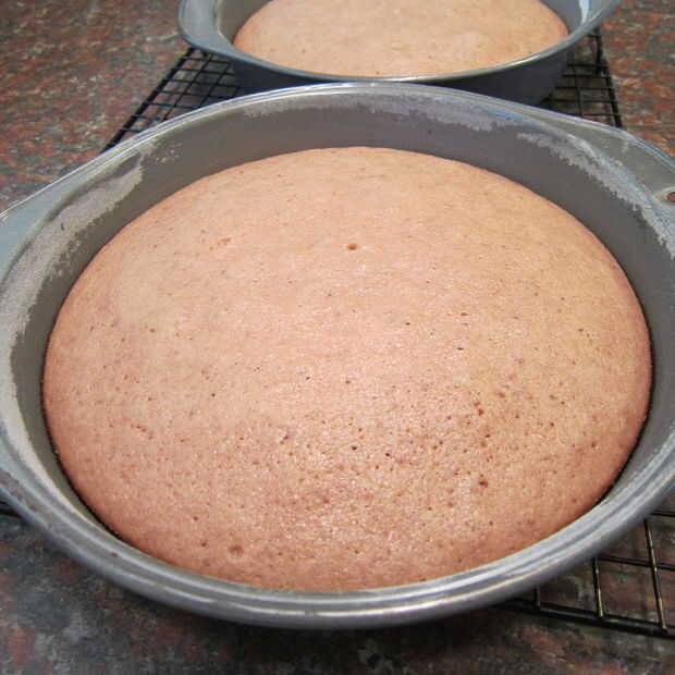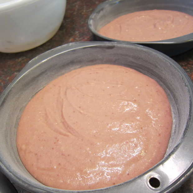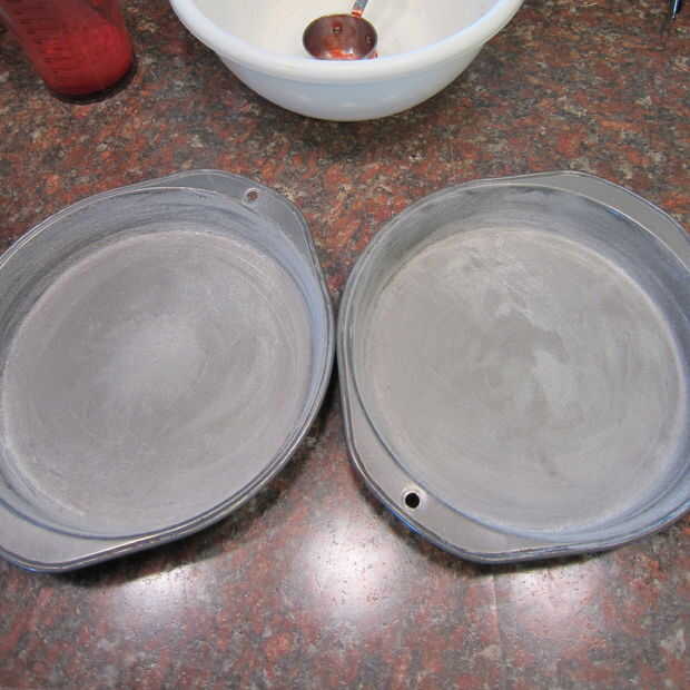 Precalentar el horno a 375 grados F. grasa y harina, dos de 8 o 9 pulgadas redondo moldes. Ponga a un lado.
