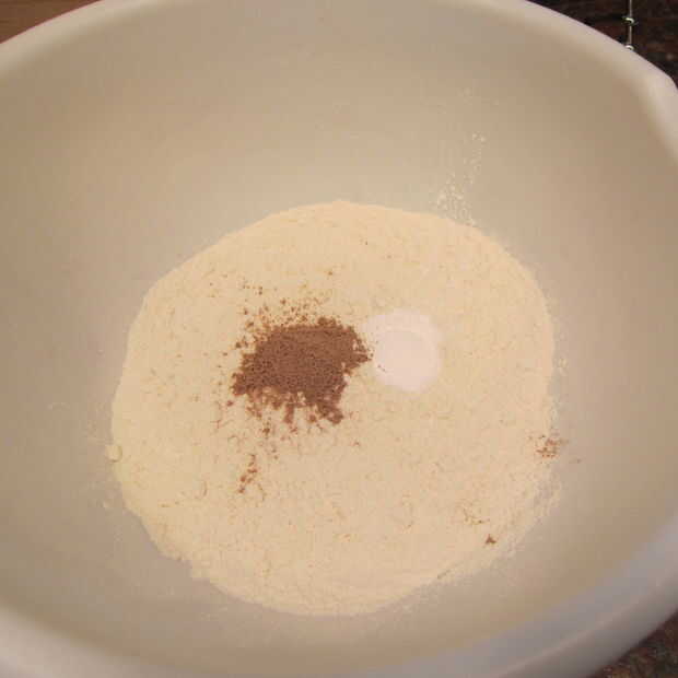 En un tazón mediano cernir harina, polvo de hornear, sal y cardamomo en polvo. Ponga a un lado.