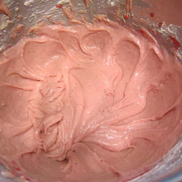 Añadir puré de fresas y mezcla hasta incorporar y la masa esté suave.