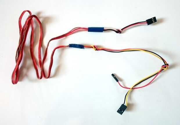 - Realice la siguiente conexión empalmando los dos extremos del cable del arco iris y el cable de extensión de servos