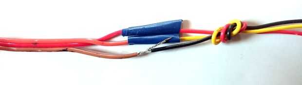 - Sellar cada empalme con cinta aislante. Sellar una vez más el grupo de los empalmes con cinta aislante.