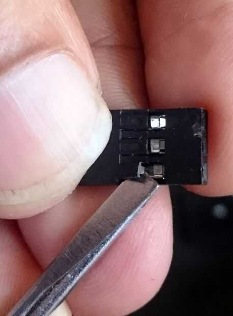 - Con un destornillador quitar el cable rojo del JST-SH conector del otro extremo y reacomodar los cables negros y amarillos en la ranura 1 y 3 del conector.