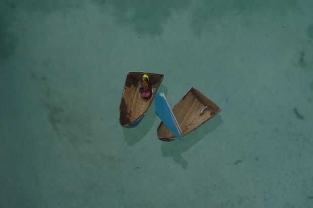 Un barco de cartulina/ductape construido para una competición. Los planes fueron construidos usando el Autocad y luego un montón de cinta pato y cartón