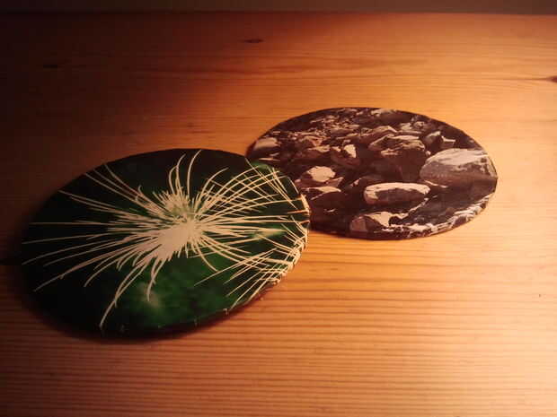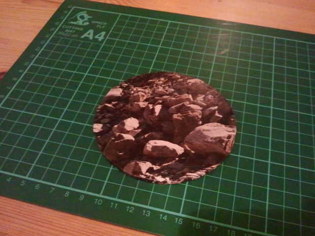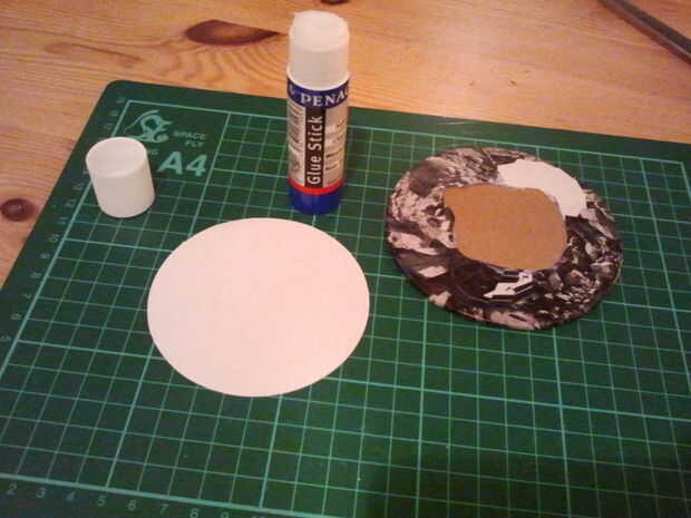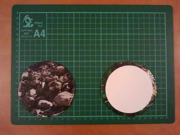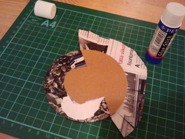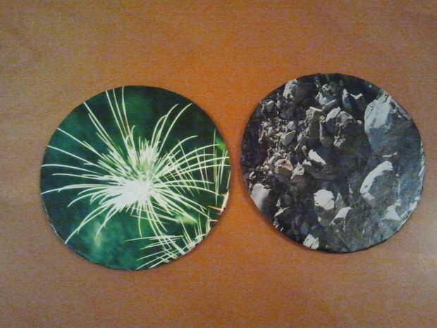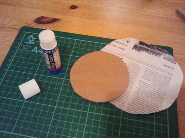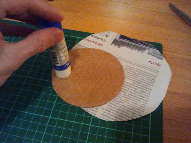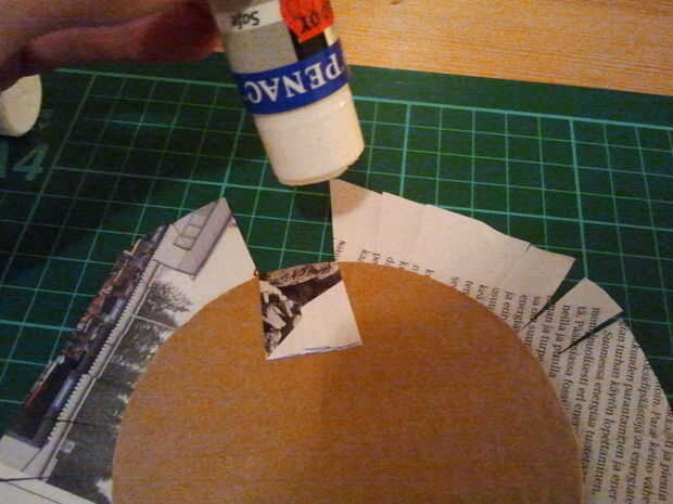 Cortar formas redondas de cartón. Diámetro de 10 cm es buena. Elegir algunas revistas o imprimir cualquier cosa que te gusta y utiliza para cubrir el círculo de cartón. Puedes ver la técnica para esto en las fotos. Cortar un círculo más pequeño de revista o papel de impresora y péguelo en la parte inferior de la montaña. Ahora está listo para usar!