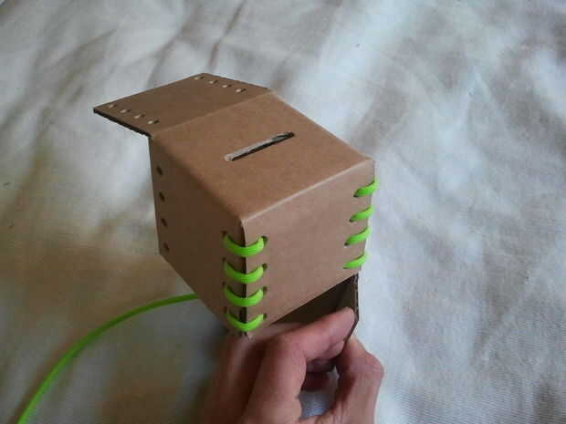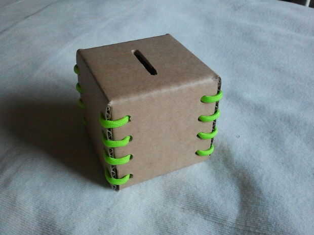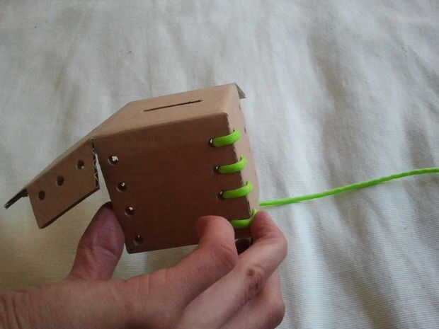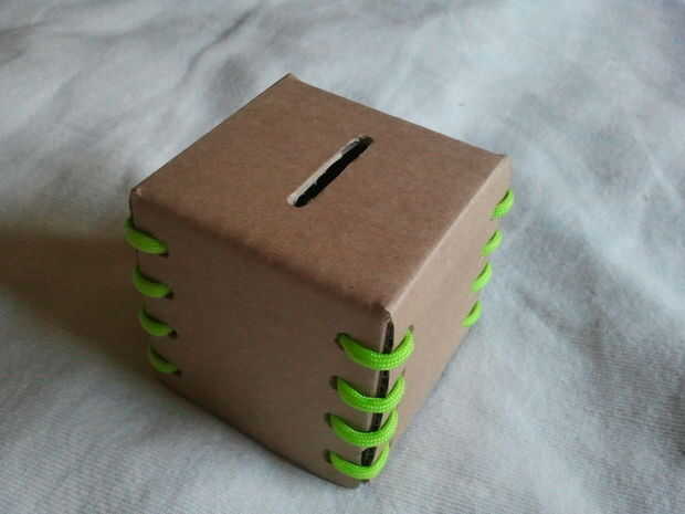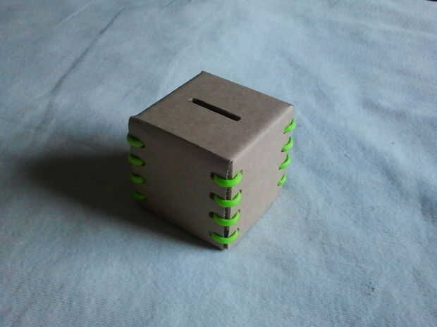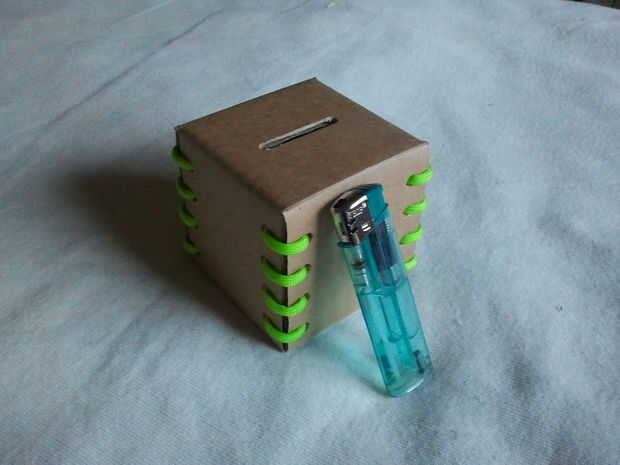 Hice esta hucha porque quería hacer algo útil con los materiales habituales. La idea de esto fue cuando pensé Qué materiales debo usar. Tan simple y fácil! Todo el mundo tiene cartón, banda de goma y algún tipo de cable.