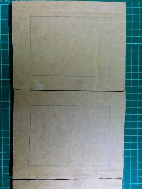 Cortar el rectángulo externo primero y luego corte y retire la parte central (rectángulo interior) de la forma anterior.