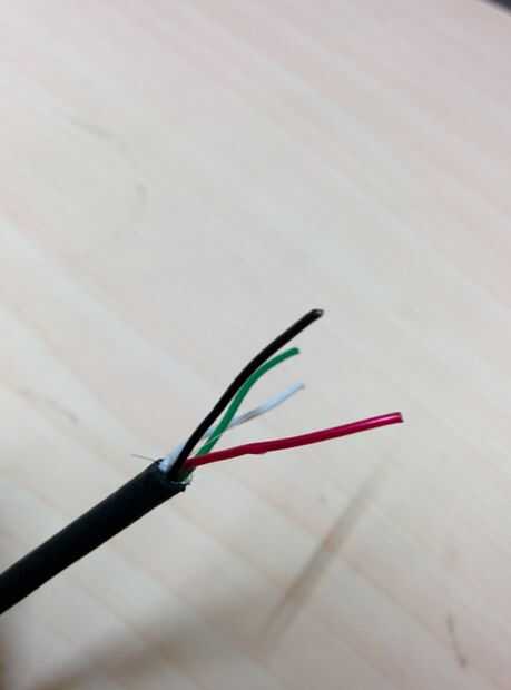 Cable USB tiene 4 cables (rojo, negros, blancos y verdes) el rojo es 5V y el negro es GND. verde y cables blancos se utilizan para la transferencia de datos. Como necesitamos poder único tan rojo y negro son útiles para nosotros. Recortar el alambre verde y blanco no deseado hacia fuera.