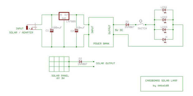 Banco de potencia ha salida de 5V y 1A. Pero el LED de alta potencia funcionan en unos 3.8v. Así que utilicé un diodo para caer el voltaje de 5V a 4.2V alrededor. También puede utilizar una resistencia en lugar de diodos. A este voltaje LED puede operar con seguridad.