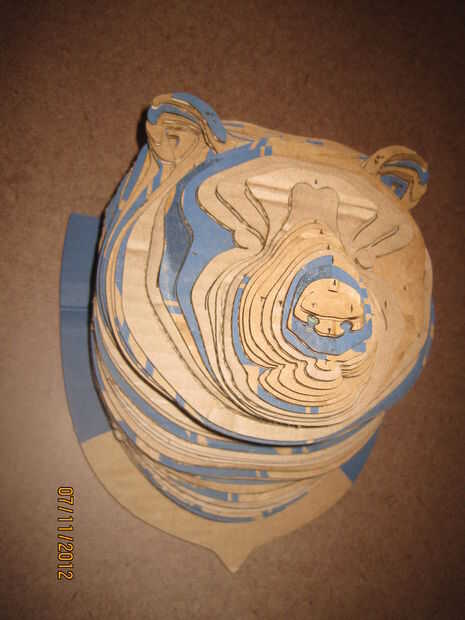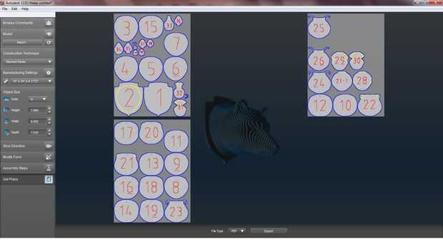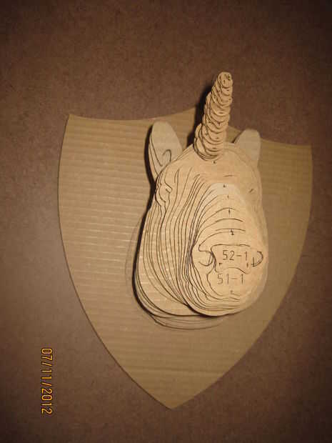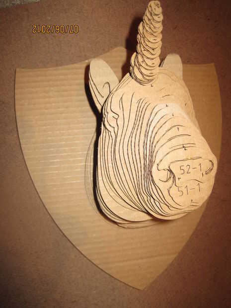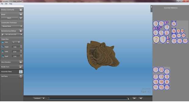 El proceso es sencillo; crear una cuenta gratuita 123D, abra la aplicación en línea de Make 123D, seleccione un modelo CAD de la enorme comunidad online, cortar el modelo, seleccionar la dirección de la corte y elegir el tamaño de hoja que desee sus rebanadas cortadas en. Si descarga la aplicación de escritorio, también puede cambiar el tamaño del modelo y crear otros efectos como el vaciamiento del modelo (como se ve en el rinoceronte durante el montaje). Los archivos son fáciles de exportar a Corel o a otros softwares de diseño compatible con corte láser. Recortar los modelos con el cortador del laser (o si no eres capaz de acceder a un cortador láser, con una sierra o un cuchillo del exacto) y prepararse para la Asamblea.