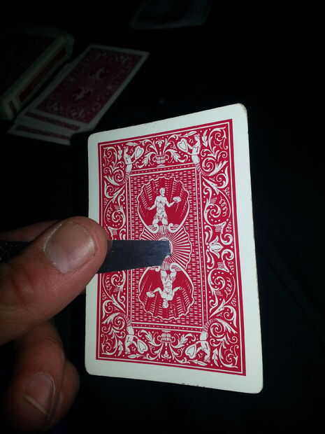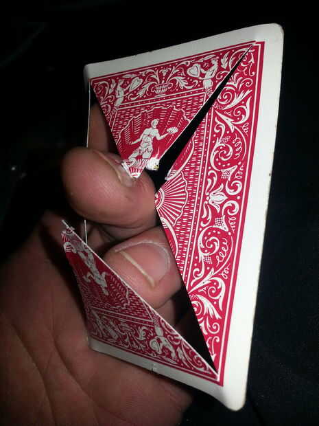 Una vez que la cubierta de la desea utilizar empezar cortar. Me gusta las cubiertas que tienen la frontera blanca alrededor de los colores. Esto facilita la corte porque usted tiene una línea de corte. Hay otras maneras de esta parte pero esto es lo que he decidido. Tomar un poco de tiempo y puede hacer un pequeño lío. No todas las tarjetas no se olvide de guardar algunos se sientan en la parte superior para cubrir cuál es dentro de corté. También necesita una tarjeta en la parte inferior para mantener la materia caída hacia fuera que se consigue pegada. Así que cortar sobre 40-45 de las tarjetas dependiendo de cuántos usted quiere sentarse en la parte superior. Rompió la parte de corte en pocos pasos. Empecé con meter un agujero lanzó la tarjeta con unas tijeras un ángulo apuntada hacia una de las esquinas. Fui lanzó e hizo esto primero a todas las cartas. Entonces yo cortar cada tarjeta cuatro veces desde el corte de centro a la parte del borde blanco de la tarjeta. Recuerde que las tijeras corta un poco más entonces la punta de las tijeras. Asegúrese de no cortar el borde de la tarjeta. Una vez que haya formas de triángulo en la tarjeta que usted puede fácilmente cortar a lo largo de la orilla blanca y cortar el interior de la tarjeta. Tienes que hacerlo cuatro veces en cada tarjeta. Corte con cuidado para que no doble ni ripear tus tarjetas.