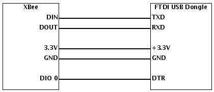 Construí mi transmisor en un pedazo de perfboard, utiliza conectores hembra para enchufar el dongle FTDI en, así como para proporcionar un enchufe para el XBee breakout Junta.