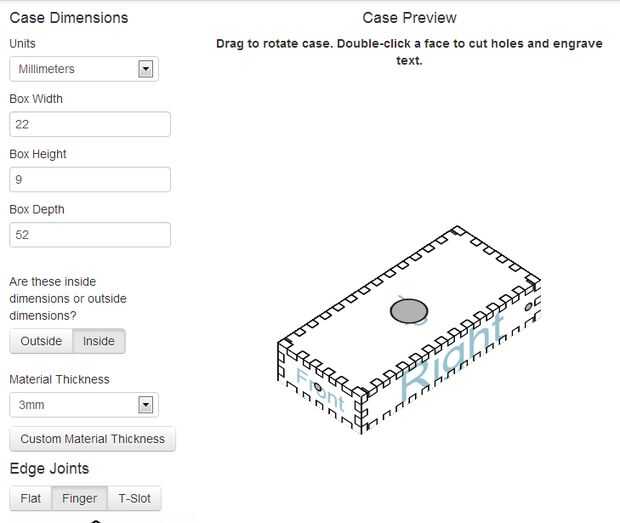 Para o desenho da caso foi utilizado o el software MakerCase (disponível em www.makercase.com).