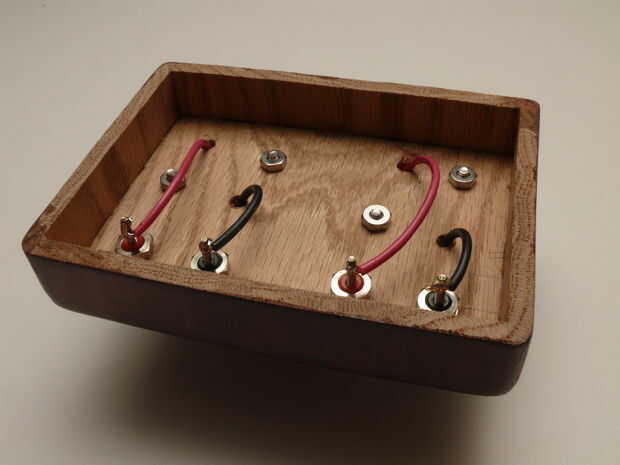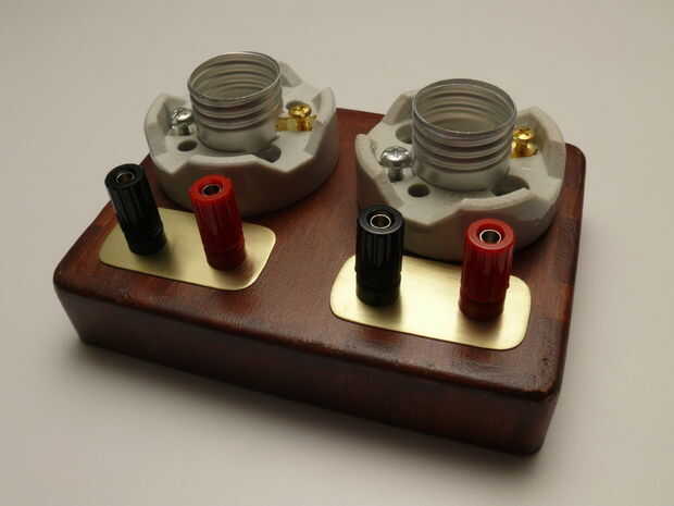 Alimentados con algunos cables 18AWG a través de los orificios en la parte trasera los focos y soldados a los terminales de conexión. Sujeta los otros extremos de los terminales de tornillo. Después de eso, poner los anillos de retención en los accesorios y había añadido algunos bulbos.