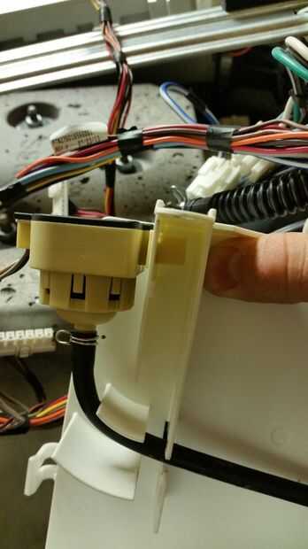 Usted tendrá que desconectar el sensor de presión de la parte delantera de la carcasa. Utiliza un simple push-in clip que usted puede pellizcar cerrado por un lado y trabajo hacia atrás por el orificio de montaje. Un par de pinzas de punta de aguja son muy útiles para esto, pero se puede hacer a mano sin demasiada dificultad.