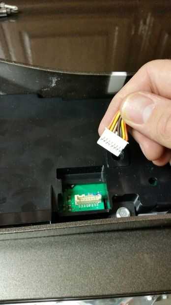 Después se quitan los tornillos, se retira el panel frontal tirando hacia arriba en el panel de la derecha. Esto Desenclave la grapa de la cabeza del perno y el retiro. Voltee el panel sobre y pone en la parte superior de la lavadora, retire el conector de cables y entonces apartar el panel.