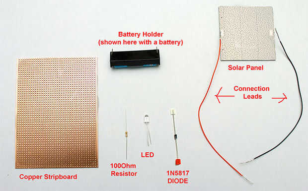 Diodo 1N5817 - este diodo permite corriente fluya en solamente una dirección, esto evita que la batería se descarga a través del panel solar en la noche. Gotas de 0.2V del sistema. Este diodo de bloqueo también necesita colocar en el circuito en la orientación correcta. El diodo tiene una banda circular a través de su cañón en uno de los extremos del diodo. Esto debería ser más cercano a la tierra negativa.