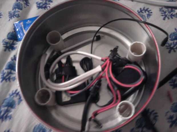 Utilice la pistola de pegamento para pegar el tubo de la lata