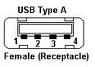 4) conector usb plano hembra que se aparea con el cable de usb de su dispositivo.