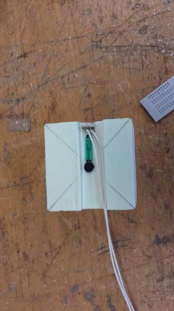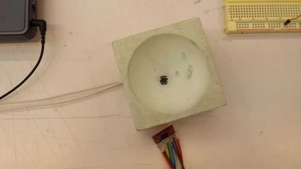 Ahora coloque el sensor de fuerza exactamente concéntrico con el orificio taladrado en la Copa. Y sujete adecuadamente el sensor