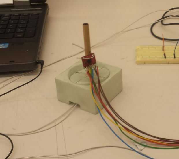 Fijar el acelerómetro a la palanca centrada con el alambre.