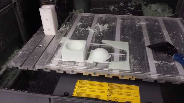 Para hacer la superficie semiesférica tan preciso como sea posible, se recomienda utilizar el prototipado rápido. Utilizamos una máquina de fresado CNC, fresado de espuma de poliestireno (EPS). Cuando este método recuerda que la pieza de espuma tiene que ser 180 * 90 * 50 mm.