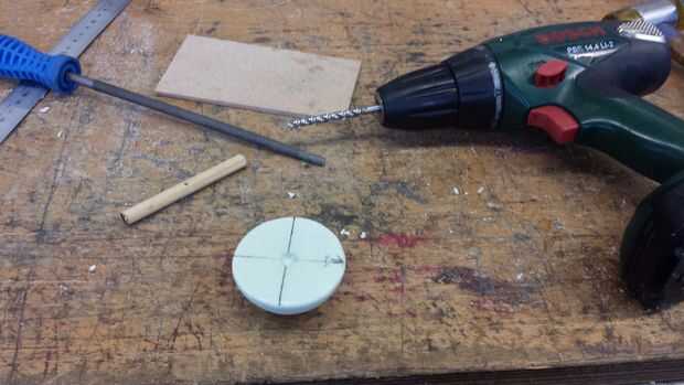 Tome la parte posterior de la cabeza de espuma y definir su centro y coloque el palo de madera en el centro.