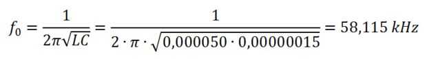 En caso el cálculo anterior la resonancia óptima real que se midió fue de 67 kHz, poniendo el 58 kHz (como se calculó) bien dentro de la gama de la frecuencia de resonancia, que oscilan alrededor de 35 kHz a 99 kHz en este caso.