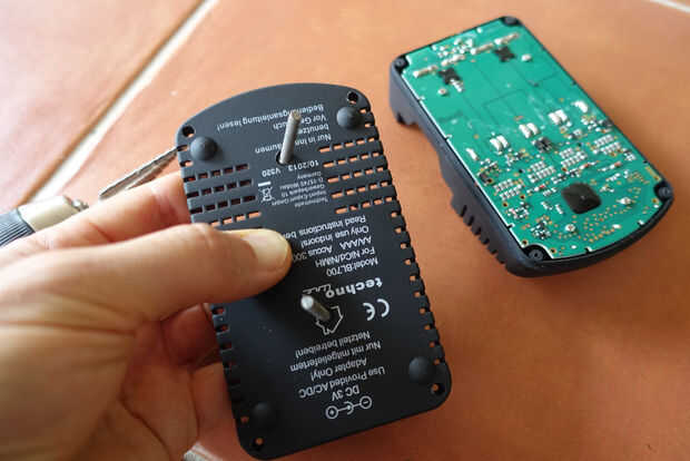 Abrir el BL700 y retire la base de la BL700. Esto se hace fácilmente quitando los 4 tornillos de la parte inferior de la unidad.