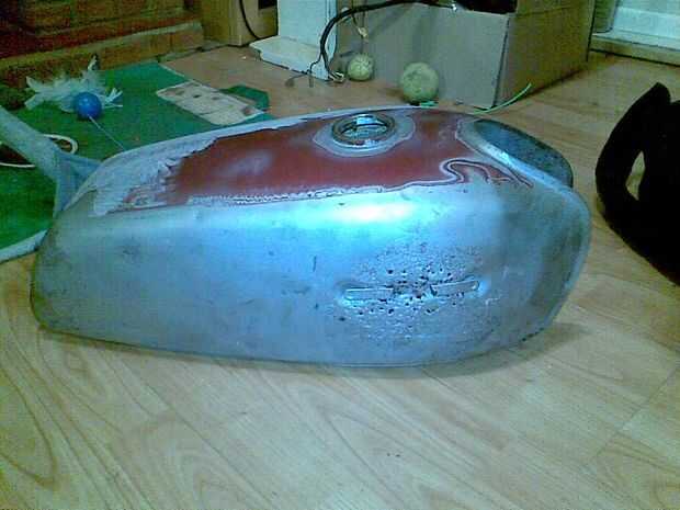 Primer paso es la preparación para que este tanque era aqua con chorro para lavar combustible viejo y quitar moho, entonces fue recubierto con fundente y estañado.