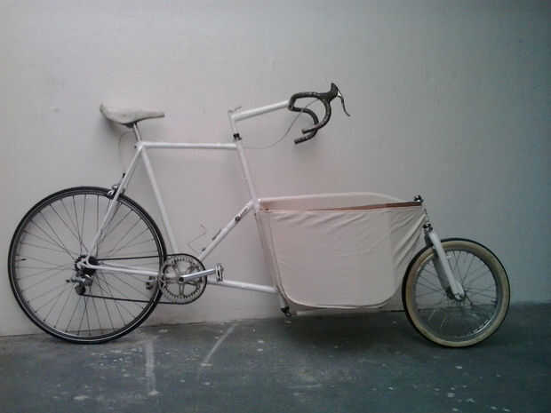 Construir una bicicleta de carga de una vieja bicicleta de montaña, un carrito de compra metal, piezas de la bici varios, una variedad de pedazos de metal y una voluntad para hackear cosas apartes!Yo actualmente estoy viviendo una vida libre de coche