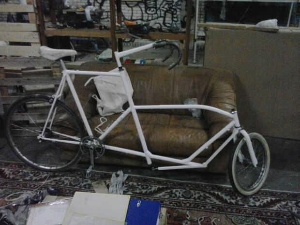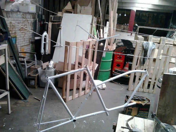 comprobación de las medidas para una carga racebike mediante la construcción de una maqueta de cartón de la moto.