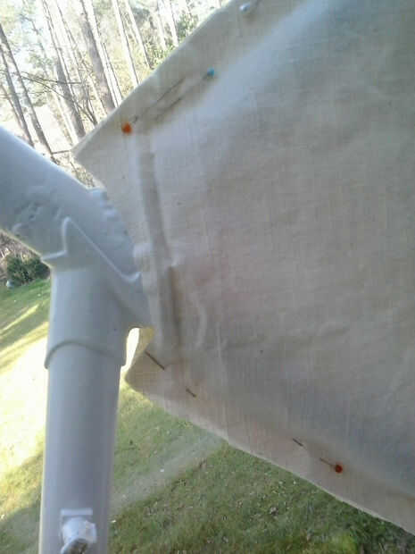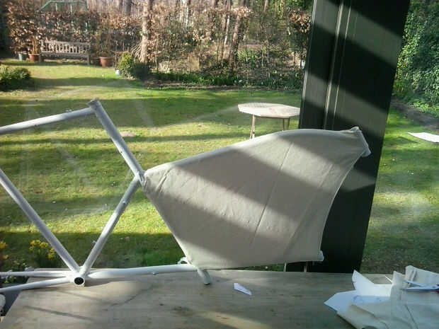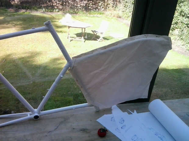 gallina que he creado una primera parte que encaja en el marco de la bicicleta. Esto para asegurar que instalado firmemente. El ajuste exacto se realizó mediante el uso de agujas para marcar donde había que hacer la costura. Primero cubrió la dos hojas pof tela junto a llega un ceñido ajuste y entonces yo som más agujas usadas para marcar donde sería la línea ceñido ajuste. la parte superior y delantera donde cosieron en la parte inferior y detrás allí donde cremalleras cosidas en hacer shure la bolsa pueden ser comprimido en y con cremallera de.