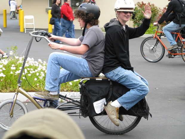 Algunos de los estudiantes que a día de la educación conseguir velocidad, entonces están parados en la cubierta y sostener las barras mientras hacía ballet de moto y bici surf.
