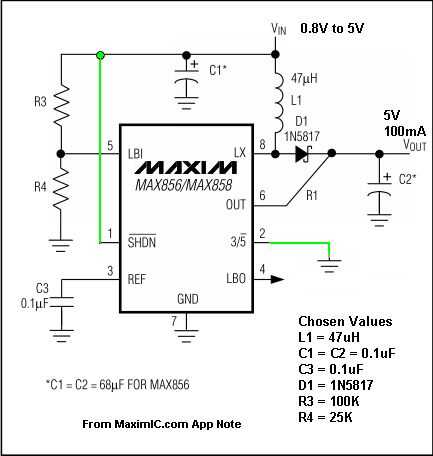 Estamos mirando hacia el uso de la MAX1522 MAX1524 de Maxim IC pero que tomará tiempo para nuevas piezas de la fuente y no queremos dar a conocer un esquema no probado. ¿Recomendaciones para un impulso de buena eficacia con un 0.8V a 5V rango de entrada? Debe ser superior al 85% de eficiencia para una salida de 500mA.