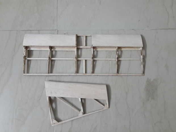 Horizontal y estabilizadores verticales se hacen con las costillas, con largueros pasando a través de ellas para hacerlas ligeras y fuertes.