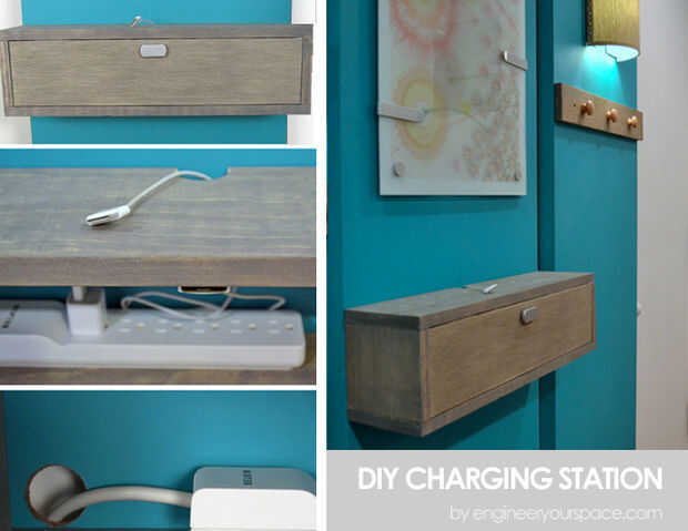 Encontrar un lugar dedicado para cargar dispositivos electrónicos mientras mantiene los cables domesticado y fuera de la vista puede ser un desafío. Y cuando Vives con compañeros de cuarto, el problema puede conseguir aún más de las manos. Así que cuando un amigo con este problema pidió mi ayuda, esto es la solución que se me ocurrió: un DIY de pared carga combo de estación/estante. Tiene una regleta en el estante más bajo donde puede enchufar los cargadores y los dispositivos de descansan en el estante superior.