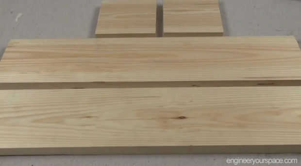 Cortar un 1 "x 6" x 6 pino ft 4 tableros: 2 x 24" y 2 x 5" (tenía esta realizado en la ferretería). También puede usar tablas de 1 "x 4" para hacer un estante más estrecho.