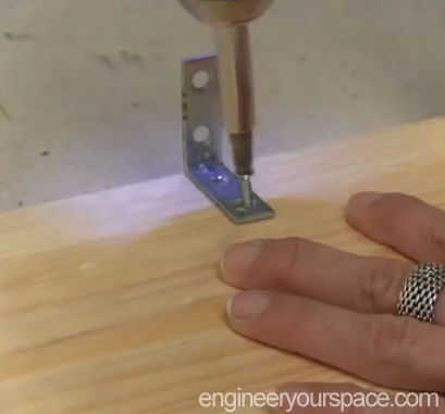 Antes de montar la plataforma, Añadir L-brackets en la parte posterior de la junta superior – estos se utilizará para fijar el cargador a la pared o un panel de pared. Monte el estante usando estos pasos de mi estante de la cocina.