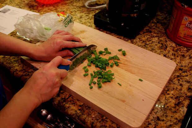 Luego agregar las cebollas verdes picadas y cualquier especias extras que desee como toque final!