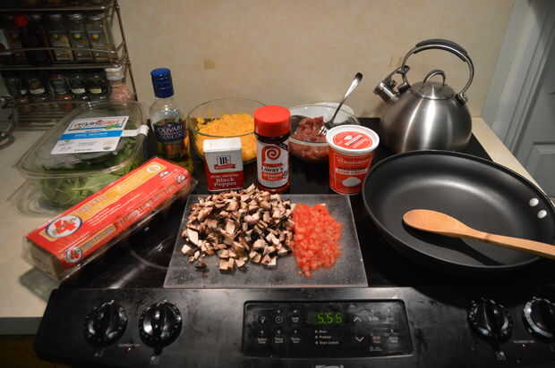 salchicha de carne de venado hace que todo sea mejor sabor. Sin embargo otro uso para los tomates asados.Paso 1: Identificar los ingredientes Necesitaba una cena rápida e identificado algunas cosas en mi nevera que debían utilizarse: un manojo de esp
