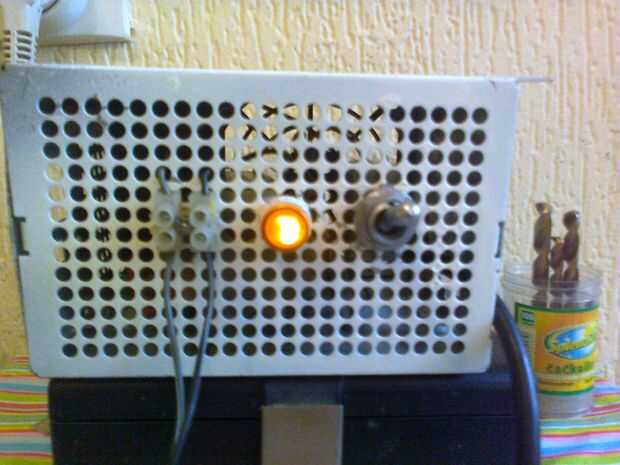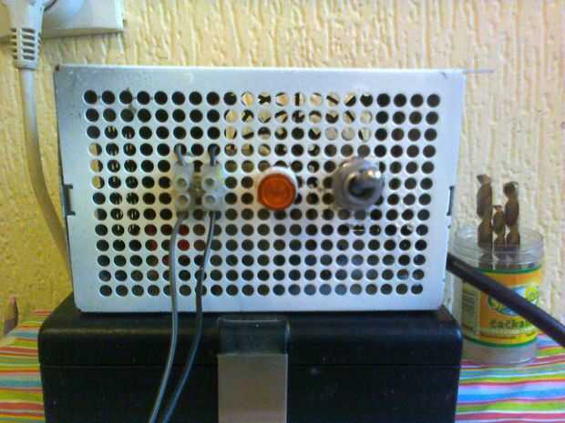 Para la base usé viejo PC power suply agujeros de dril para el interruptor y LED.