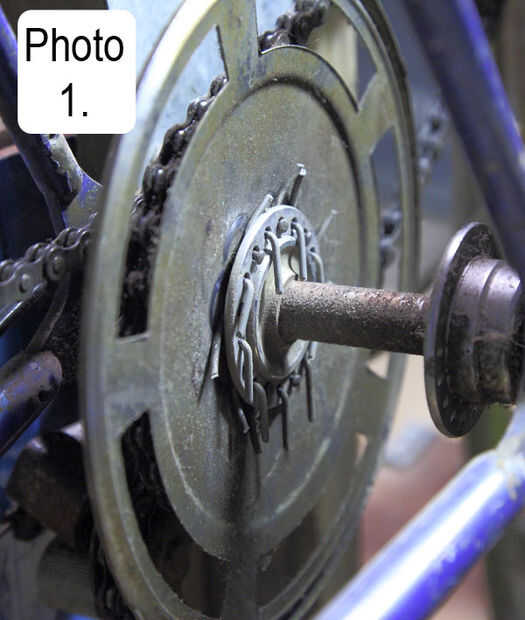 Usé unas tenazas a los radios. Son duras y difíciles de cortar. Otro método puede ser más fácil. Foto 1 muestra un primer plano de los radios ido.
