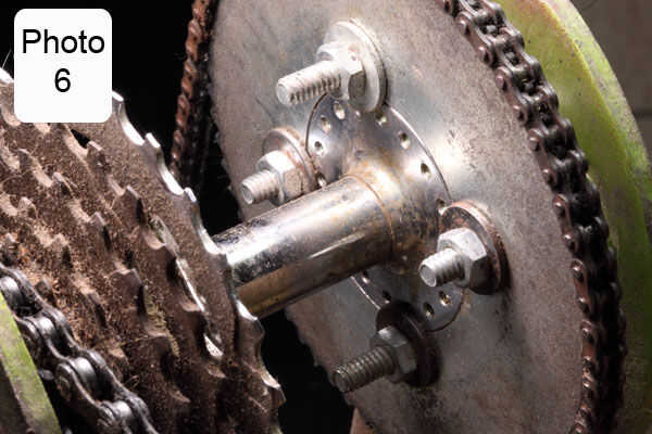 Se utilizará la herramienta de cadena para hacer una cadena de bicicleta que une los dos ejes traseros, como se muestra en la foto 4 de arriba. La herramienta de cadena que tengo se muestra en la foto 8.