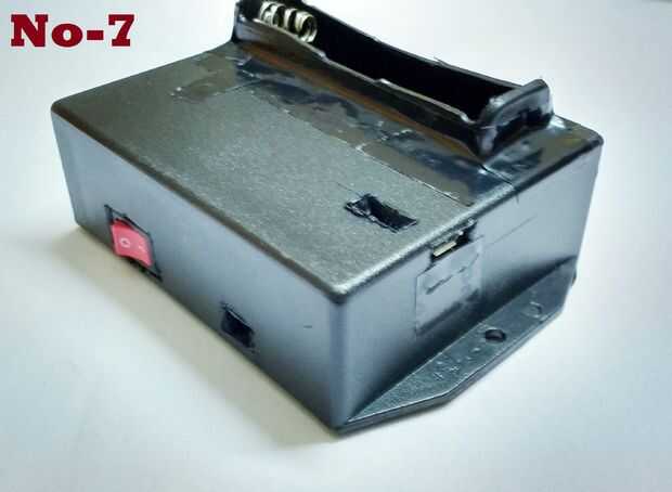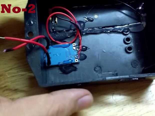 - Inserte el soporte de la batería tal que los puntos de montaje fuera del recinto; Utilice una pistola de pegamento para hacer una empresa conjunta. (Imagen No-1)