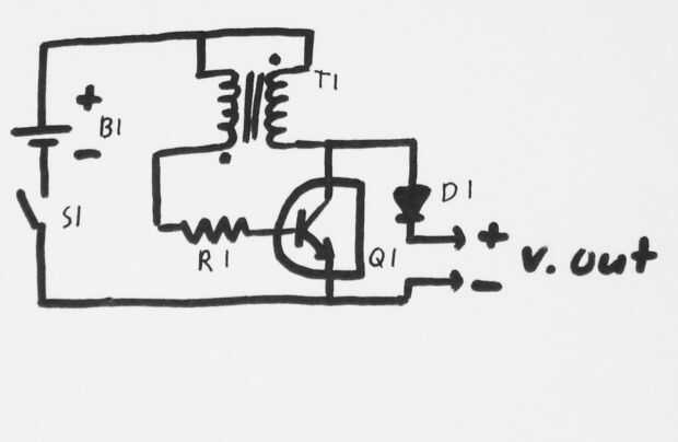 B1 es la celda de la batería AA, C o D alimentar el circuito