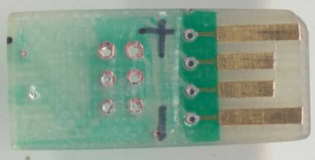 Una pieza de conector de borde cortado una antigua placa ethernet sirve como el conector de alimentación. Para hacerlo, corte una pieza que incluye cuatro dedos del borde y luego archivo para hacerla cabe dentro del conector USB en el PC.